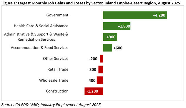 Figure 1: Largest Monthly Job Gains and Losses by Sector, Inland Empire-Desert Region, August 2025